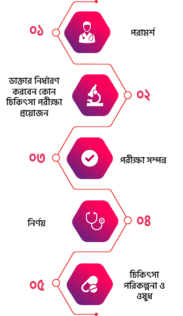 যেকোনো চিকিৎসা শুরু করার আগে, উভয় পক্ষের বন্ধ্যাত্বের মূল কারণ নির্ধারণের জন্য একটি বিস্তারিত মূল্যায়ন অত্যাবশ্যক। আমাদের বন্ধ্যাত্ব পরীক্ষা-এর মধ্যে রয়েছে হরমোনাল প্রোফাইলিং, শুক্রাণু বিশ্লেষণ, ডিম্বস্রাব (ovulation) ট্র্যাকিং এবং ইমেজিং স্টাডিজ। এগুলো সাহায্য করে নির্ধারণ করতে যে সমস্যার কারণ পুরুষজনিত, নারীজনিত, উভয় পক্ষের, বা অজানা কারণজনিত কি না।